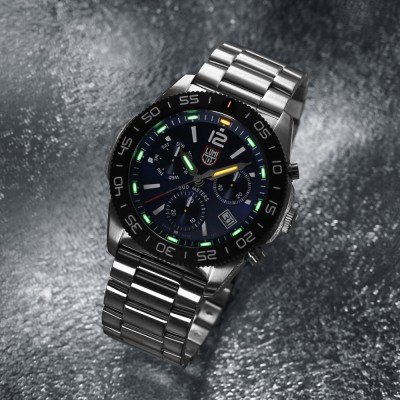 Este relógio Luminox tem uma caixa de Inox com um diâmetro de 44 mm e está equipado com uma bracelete de Inox. A caixa possui um movimento Ronda e o relógio tem um vidro Safira.