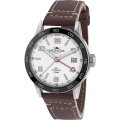 Este relógio Mondia tem uma caixa de Inox com um diâmetro de 40 mm e está equipado com uma bracelete de couro. A caixa possui um movimento Seiko e o relógio tem um vidro Mineral.