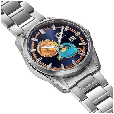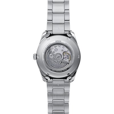 Este relógio Orient tem uma caixa de Inox com um diâmetro de 41 mm e está equipado com uma bracelete de Inox. A caixa possui um movimento Epson e o relógio tem um vidro Safira.