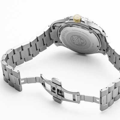 Este relógio Roamer tem uma caixa de Inox com um diâmetro de 43 mm e está equipado com uma bracelete de Inox. A caixa possui um movimento Ronda e o relógio tem um vidro Safira.