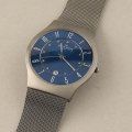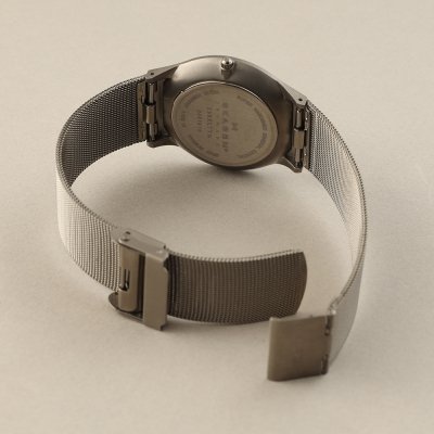 Este relógio Skagen tem uma caixa de Titânio com um diâmetro de 37 mm e está equipado com uma bracelete de Titânio. A caixa possui um movimento Miyota e o relógio tem um vidro Mineral.