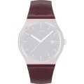 Esta bracelete de relógio Swatch é feita de plástico de origem biológica e está fixada ao relógio através de pinos em aço. A bracelete tem uma largura de 19.7 mm e fecha através de fecho. A bracelete não tem uma montagem a direito, o que significa que esta bracelete só é adequada para os relógios listados abaixo.