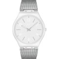 Esta bracelete de relógio Swatch é feita de aço inoxidável e está fixada ao relógio através de pinos em aço. A bracelete tem uma largura de 20 mm e fecha através de fecho milanese. A bracelete não tem uma montagem a direito, o que significa que esta bracelete só é adequada para os relógios listados abaixo.