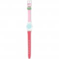 Esta bracelete de relógio Swatch é feita de silicone e está fixada ao relógio através de pinos em aço. A bracelete tem uma largura de 12 mm e fecha através de fecho. A bracelete não tem uma montagem a direito, o que significa que esta bracelete só é adequada para os relógios listados abaixo.