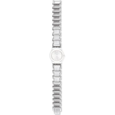 Esta bracelete de relógio Swatch é feita de aço inoxidável e está fixada ao relógio através de pinos em aço. A bracelete tem uma largura de 12 mm e fecha através de fivela joalheria. A bracelete não tem uma montagem a direito, o que significa que esta bracelete só é adequada para os relógios listados abaixo.
