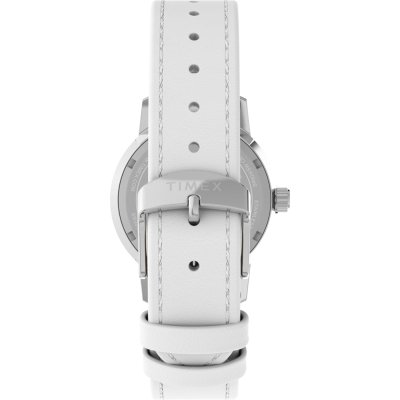 Este relógio Timex tem uma caixa de Inox com um diâmetro de 38 mm e está equipado com uma bracelete de couro. A caixa possui um movimento Timex e o relógio tem um vidro Acrílico.
