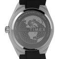 Este relógio Timex tem uma caixa de Inox com um diâmetro de 39 mm e está equipado com uma bracelete de borracha. A caixa possui um movimento Timex e o relógio tem um vidro Mineral.