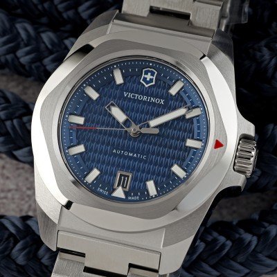 Este relógio Victorinox tem uma caixa de Inox com um diâmetro de 41 mm e está equipado com uma bracelete de Inox. A caixa possui um movimento Sellita e o relógio tem um vidro Safira.