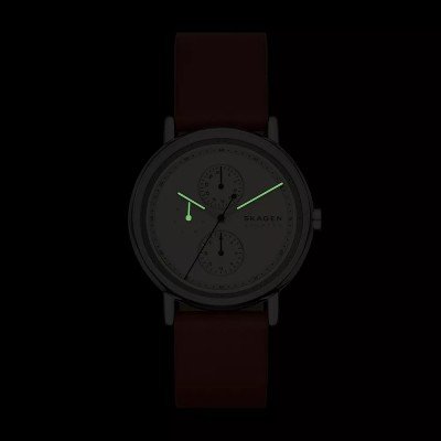 Cette montre Skagen a un boîtier Inox 40 mm en diamètre et est équipée d'un bracelet cuir. Le boîtier contient un mouvement Miyota et la montre est dotée d'un cristal Minéral..