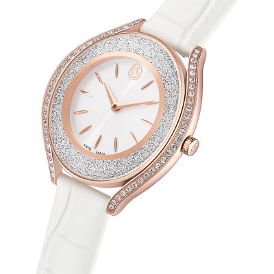 Cette montre Swarovski a un boîtier Inox 35.5 mm en diamètre et est équipée d'un bracelet cuir. Le boîtier contient un mouvement Ronda et la montre est dotée d'un cristal Minéral..