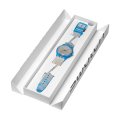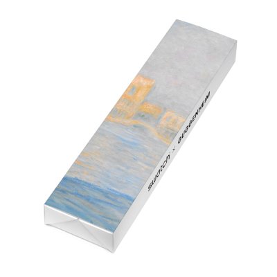 Le cadran et le bracelet bleu mat transparent présentent une impression de l'œuvre d'art de Claude Monet "Le Palais Ducal, vu de San Giorgio Maggiore". L'impression multicolore du cadran s'illumine en orange sous la lumière UV.