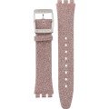 Ce bracelet de montre Swatchest fait de cuir et est attaché à la montre au moyen de goupilles en acier. Le bracelet a une taille de 17 mm et se ferme au moyen d'un boucle. Le bracelet n'a pas de support droit, ce qui signifie que ce bracelet convient uniquement aux montres énumérées ci-dessous.