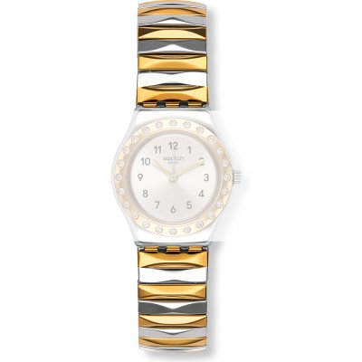 Ce bracelet de montre Swatchest fait de acier inoxydable et est attaché à la montre au moyen de goupilles en acier. Le bracelet a une taille de 12 mm. Le bracelet n'a pas de support droit, ce qui signifie que ce bracelet convient uniquement aux montres énumérées ci-dessous.