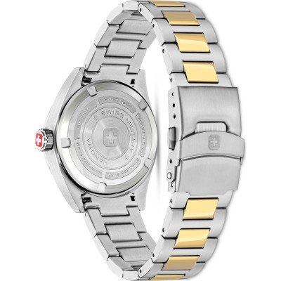 La montre est 10 ATM. Cela signifie que la montre est adaptée à la natation. La montre est livrée avec la Swiss Military 3+2.
