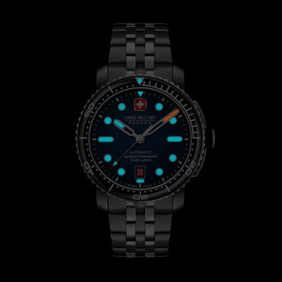 La montre est 100 ATM. Cela signifie que la montre est adaptée à la plongée. La montre est livrée avec la Swiss Military 3+2.