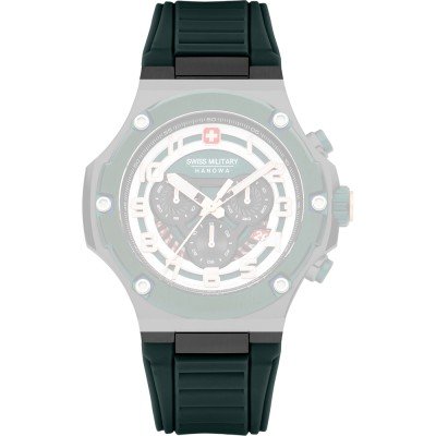 Ce bracelet de montre Swiss Military Hanowaest fait de silicone et est attaché à la montre au moyen de goupilles en acier. Le bracelet a une taille de 26 mm et se ferme au moyen d'un boucle. Le bracelet n'a pas de support droit, ce qui signifie que ce bracelet convient uniquement aux montres énumérées ci-dessous.