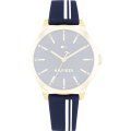 Ce bracelet de montre Tommy Hilfigerest fait de silicone et est attaché à la montre au moyen de Épingles à ressort. Le bracelet a une taille de 15 mm et se ferme au moyen d'un boucle. Le bracelet est doté d'une monture droite, ce qui signifie qu'il convient à toutes les montres de la Tommy Hilfiger dotées d'une monture droite..