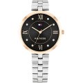 Cette montre Tommy Hilfiger a un boîtier Inox 34 mm en diamètre et est équipée d'un bracelet Inox. Le boîtier contient un mouvement Seiko et la montre est dotée d'un cristal Minéral..