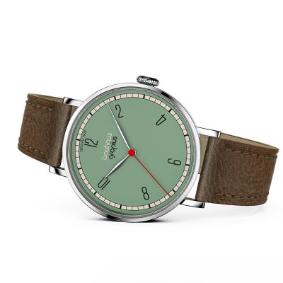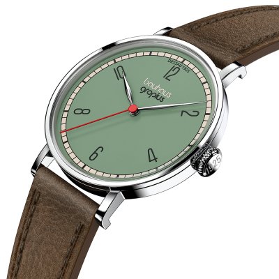Cette montre Walter Gropius a un boîtier Inox 38 mm en diamètre et est équipée d'un bracelet cuir. Le boîtier contient un mouvement Miyota et la montre est dotée d'un cristal Saphire double antireflet..